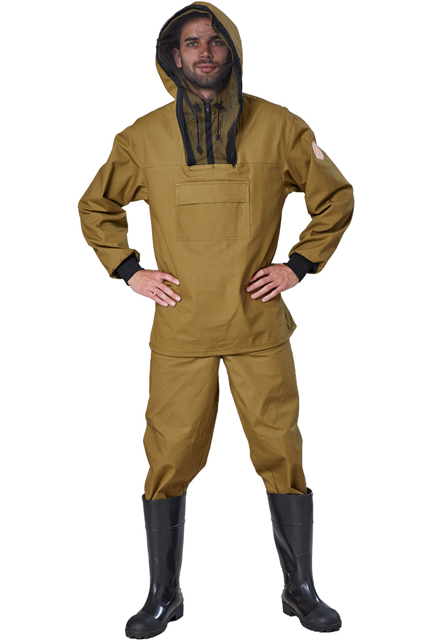 ➠ Куртка прямого силуэта с отрезными кокетками полочки, с капюшоном сложной конструкции, исключающей проникновение насекомых под одежду. Капюшон с противомоскитной сеткой. Низ куртки стягивается эластичным шнуром с фиксатором. Рукава втачные, с трикотажными манжетами-напульсниками. Полочка с накладным карманом с клапаном. В шве притачивания капюшона к полочке выполнен внутренний карман для противомоскитной сетки.